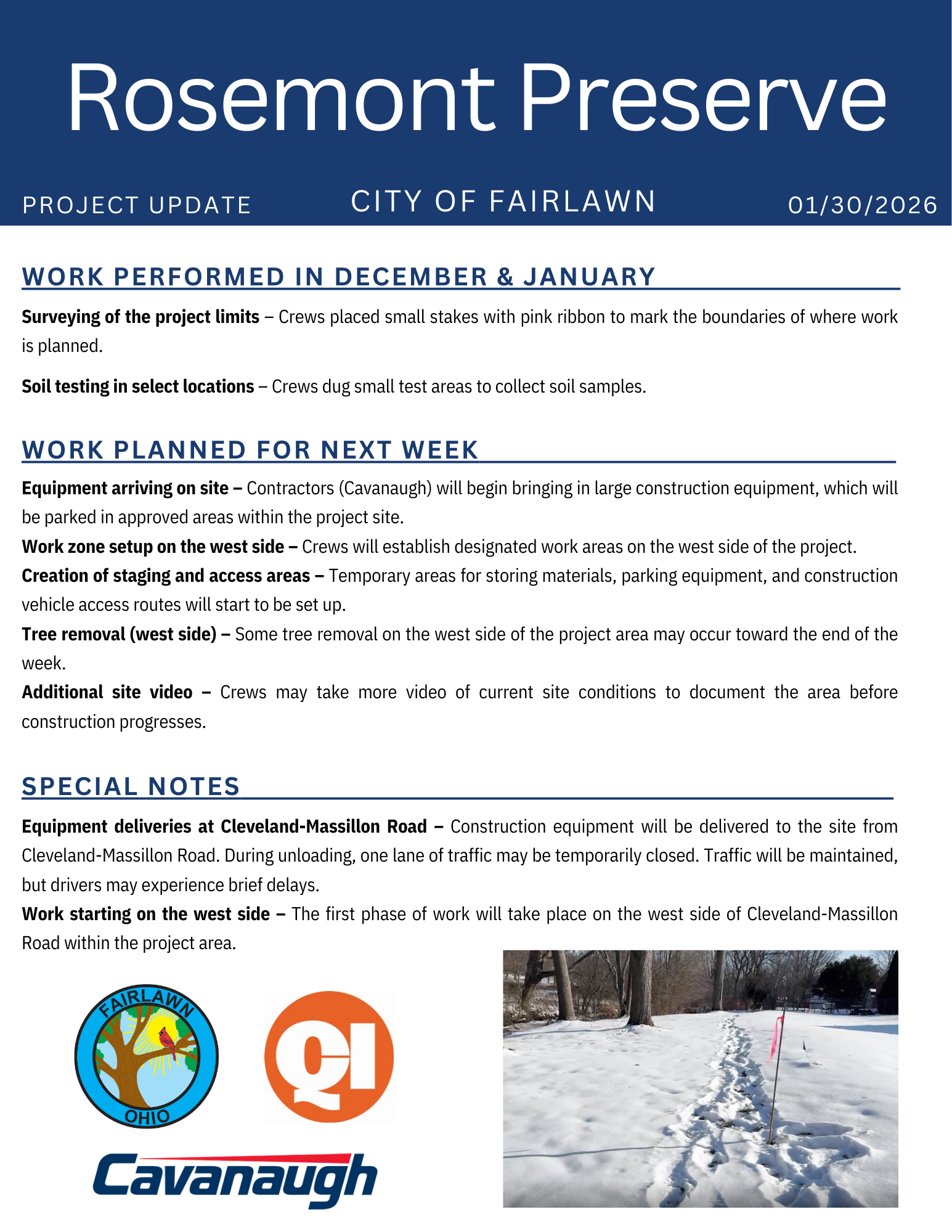 Rosemont Preserve will be a 66 acre nature preserve, a portion of the former Rosemont Country Club will become passive use nature preserve with walking tails, storm water retention and water quality features. Bicentennial Park will be the new trail head along with a small concert venue. A small parking lot will be constructed on South Cleveland Massillon Road to accommodate Preserve entrance at mid-trail.